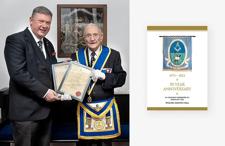 Singleton Lodge No. 8399 celebrated its 50-year Golden anniversary on 21st March at Swansea Masonic Hall. The R.W. Provincial Grand Master and his Provincial team joined the celebrations with the Brethren of Singleton Lodge along with many visiting Brethren who were present to mark this most special occasion.